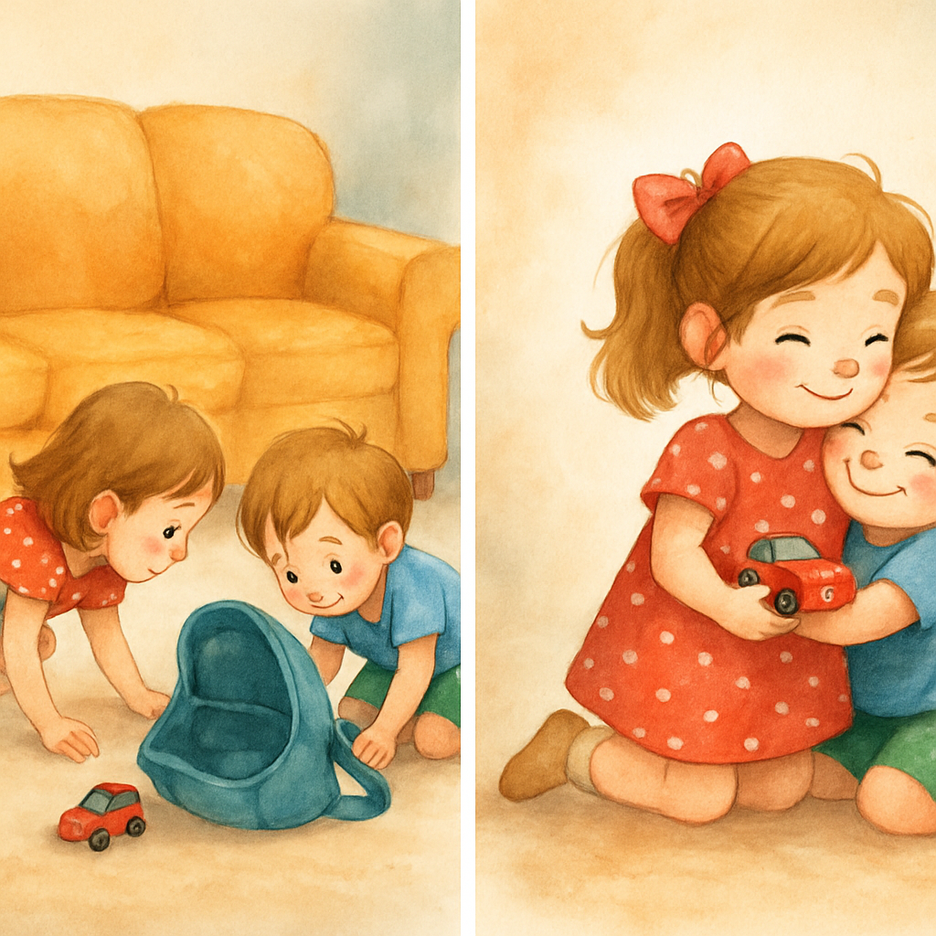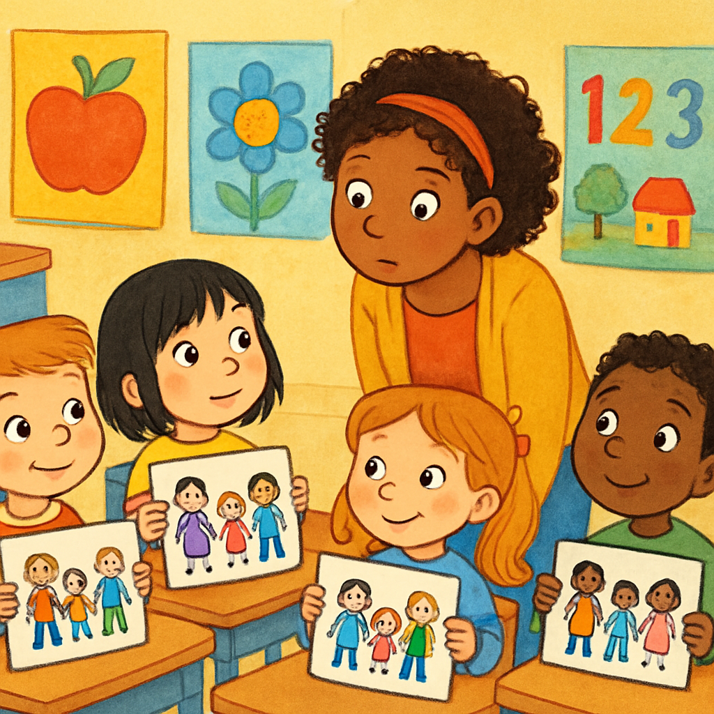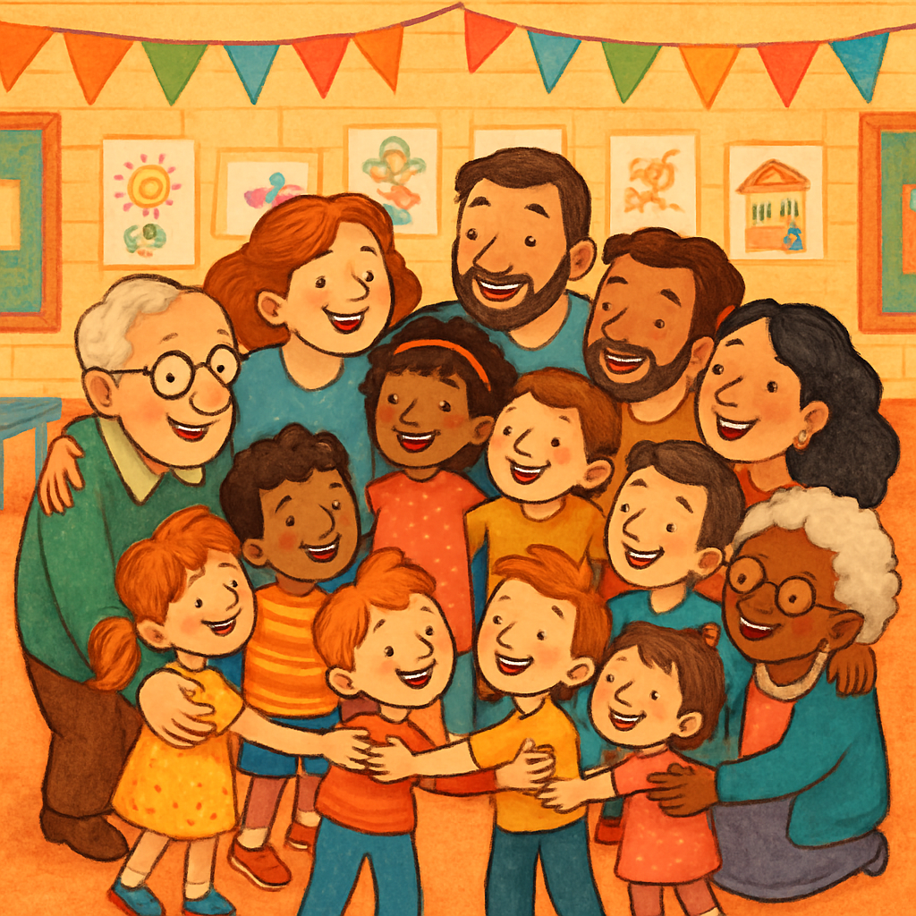 Nina acha que família é só quem mora na mesma casa. Depois de um dia cheio de surpresas, ela descobre que família também é quem cuida, escuta e ajuda, mesmo quando não é igual a gente. No final, um “abraço grande” mostra que amor pode caber em muitos formatos.