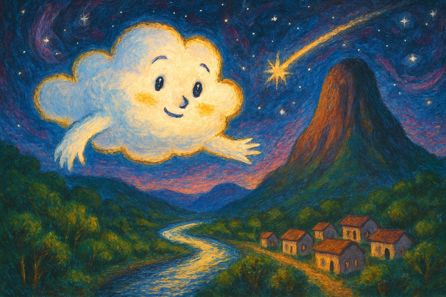 Uma nuvem sonhadora aprende que ser leve e mudar de forma é seu verdadeiro superpoder.