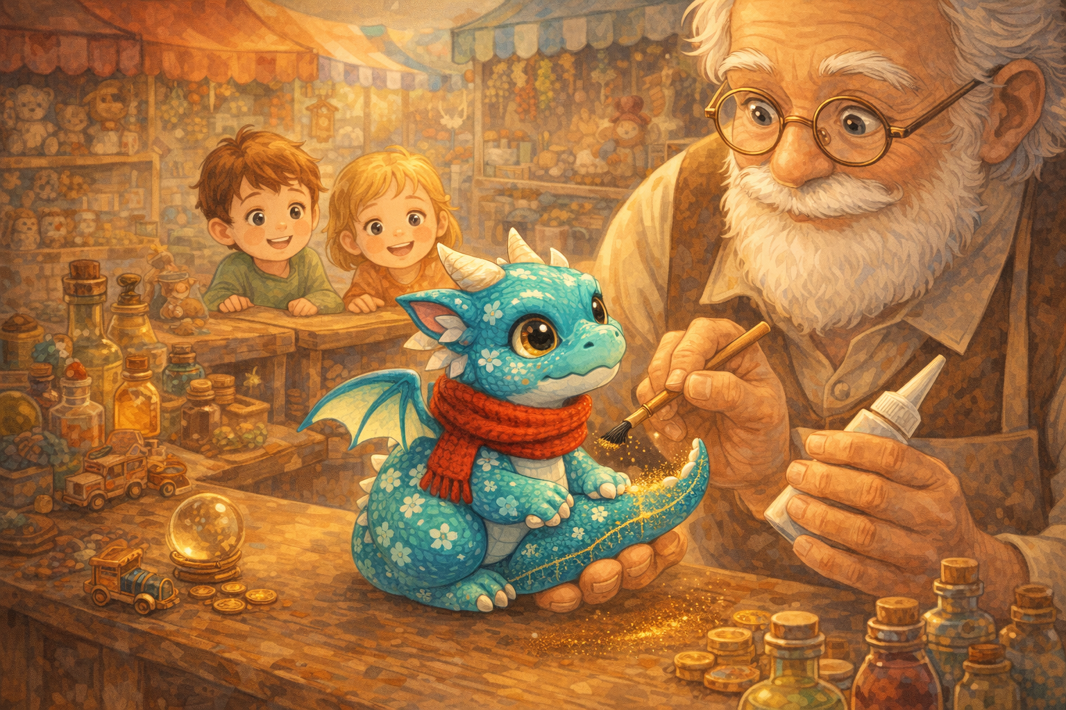 — Olha aquele dragãozinho! — Iara apontou para a prateleira. — Ele parece… gentil.
