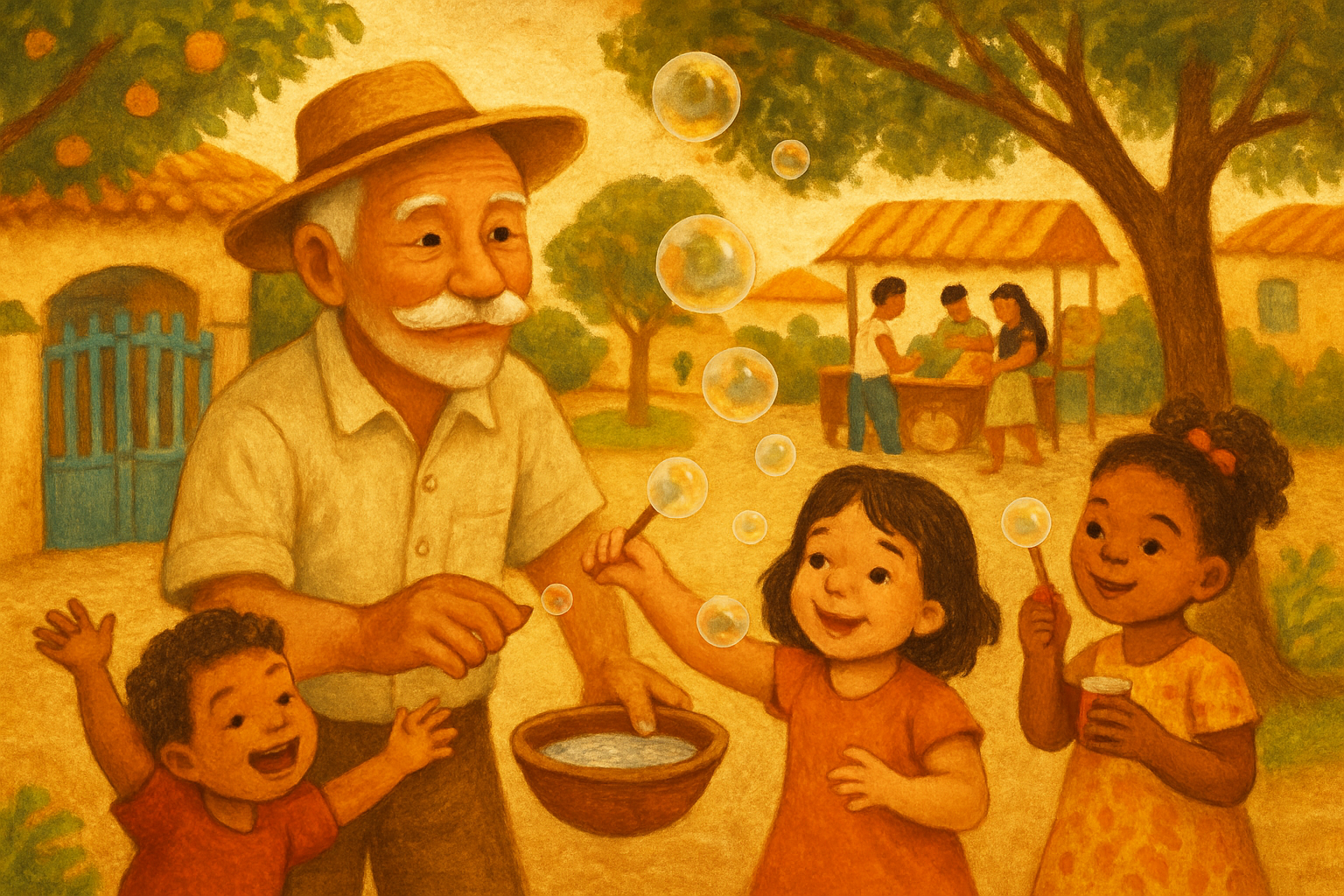 Um avô ensina aos netos que as melhores coisas da vida não custam dinheiro.