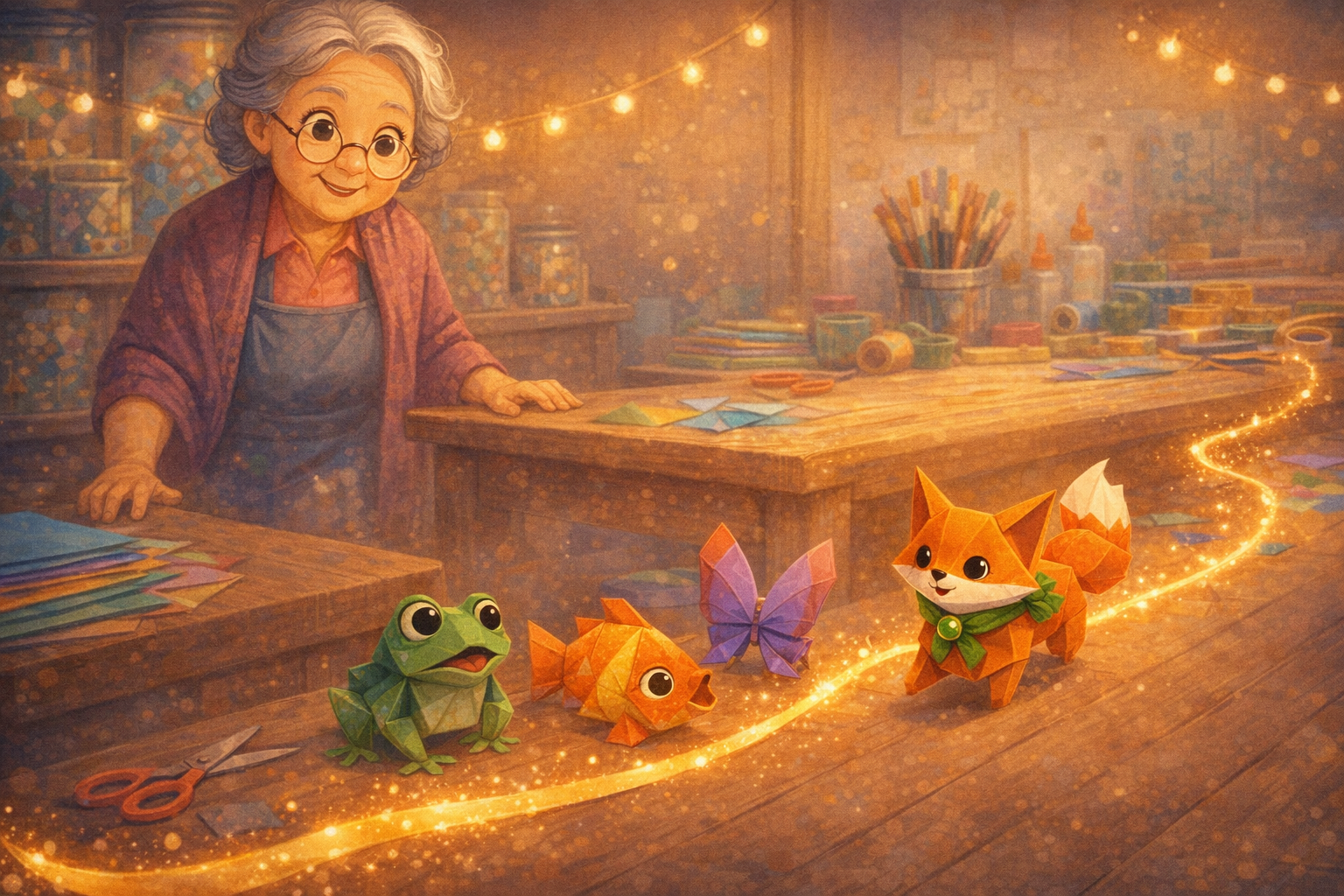 No ateliê, tudo era mágico. Quando Dona Celina dobrava o papel, os bichinhos ganhavam vida. Pulavam. Rodopiavam. Davam risadinhas.