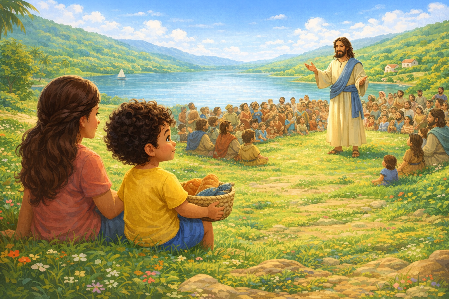 A mamãe disse: — Tito, vamos ver Jesus. Ele está perto do lago.